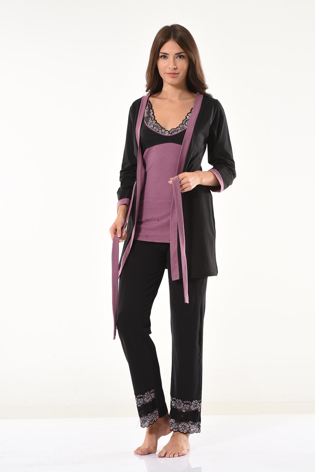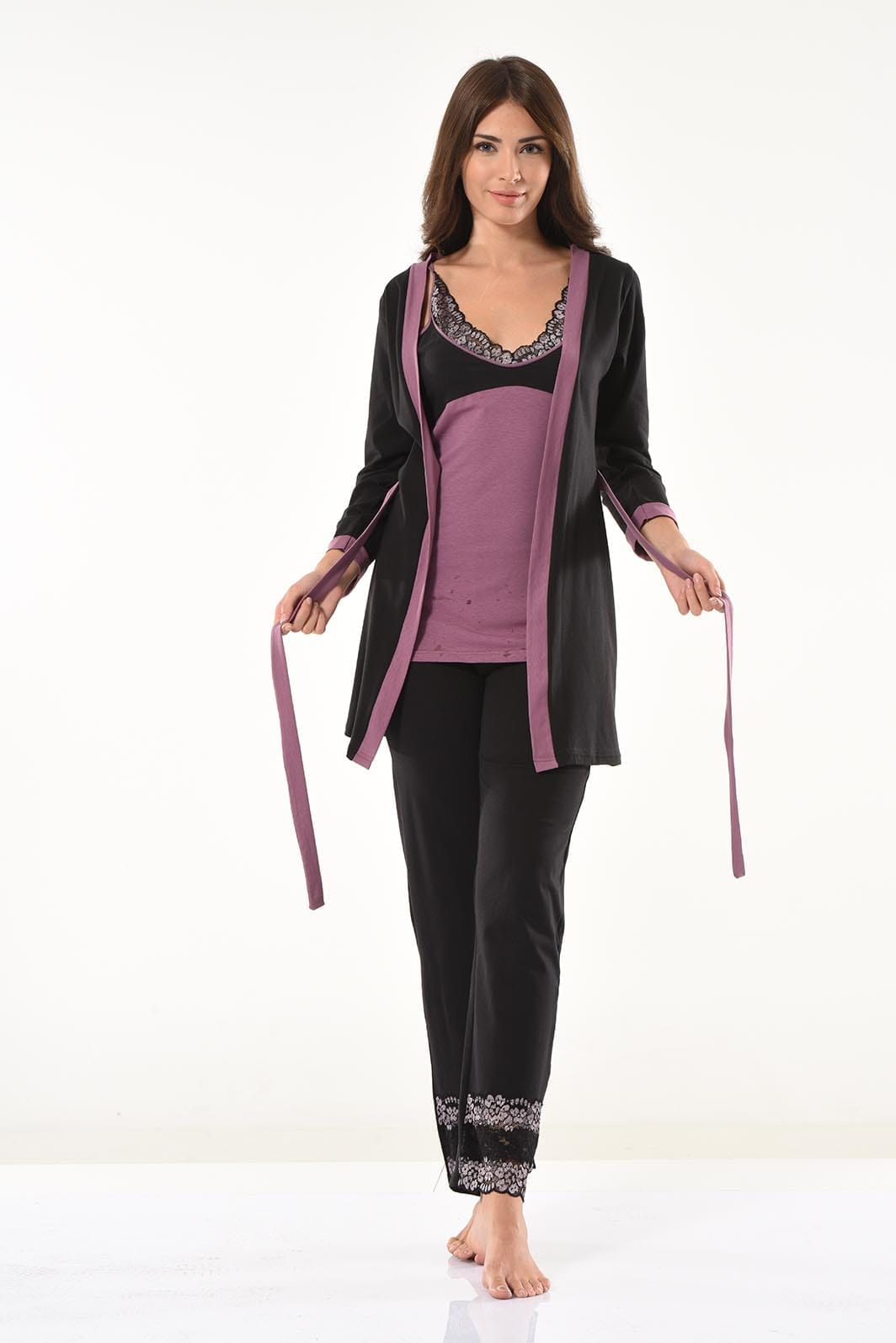 Derya Kurşun Dantel Detaylı Gecelik Sabahlık Takım 1043