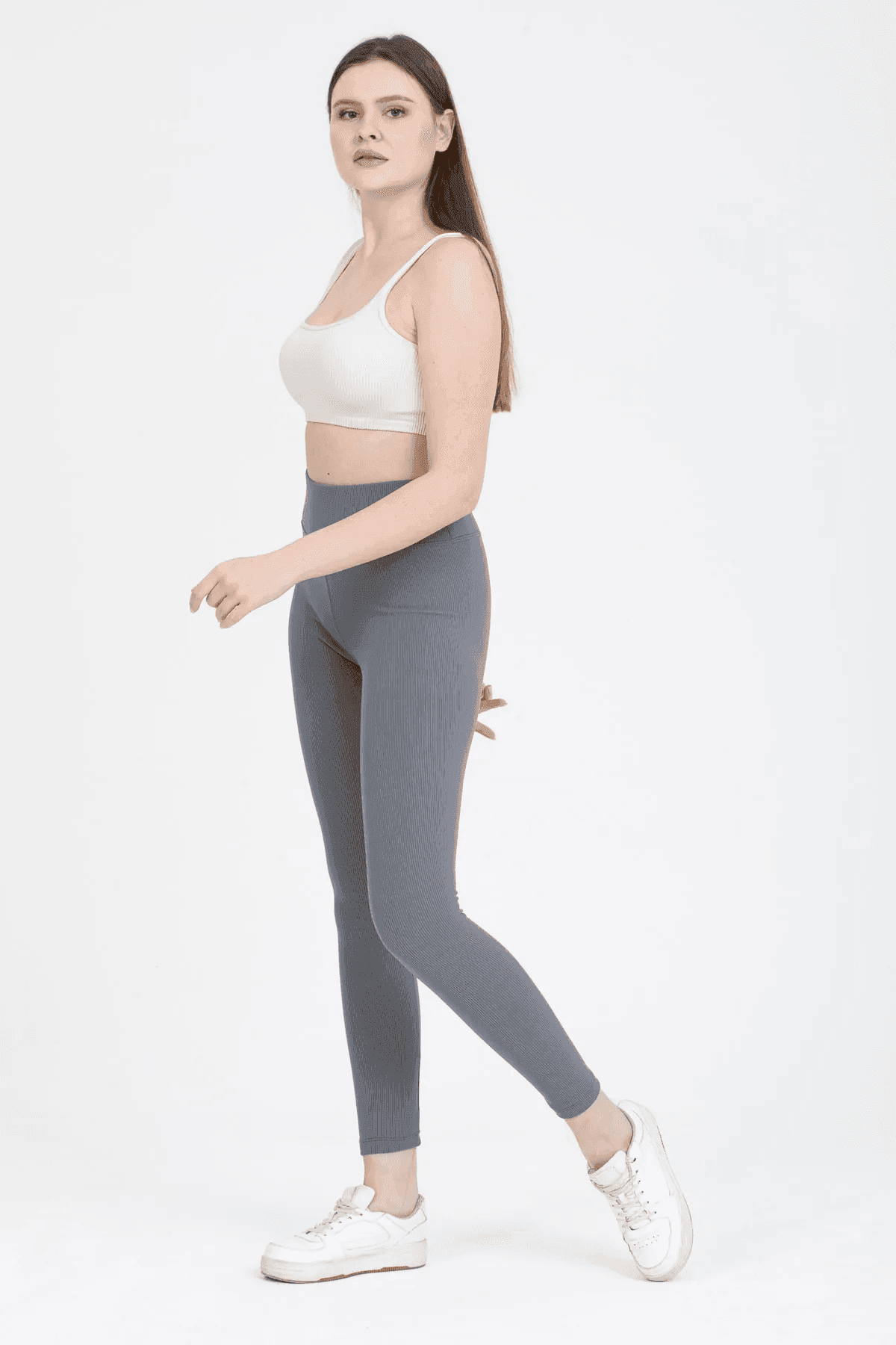 Derya Kurşun Füme Yüksek Bel Fitilli Tayt 0608