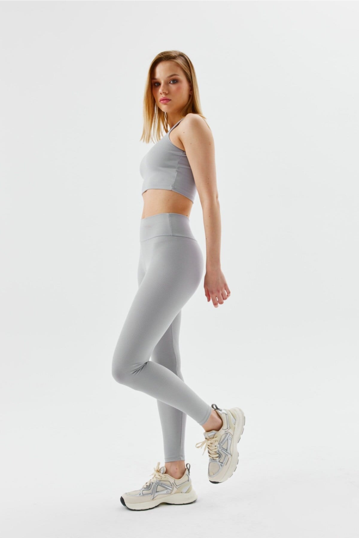 Derya Kurşun Gri Yüksek Bel Fitilli Tayt 0608