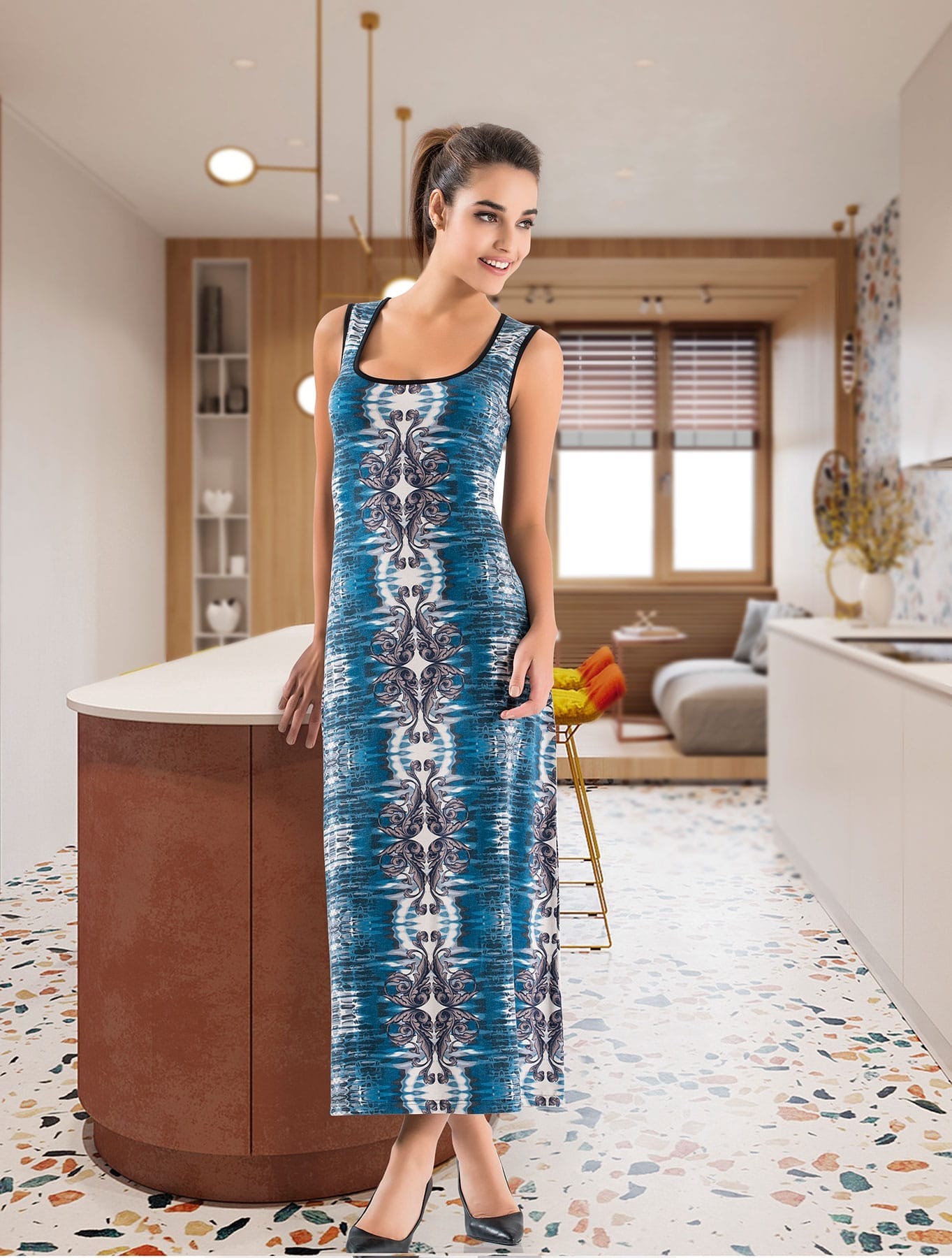 Derya Kurşun Havuz Yaka Uzun Kadın Elbise 957
