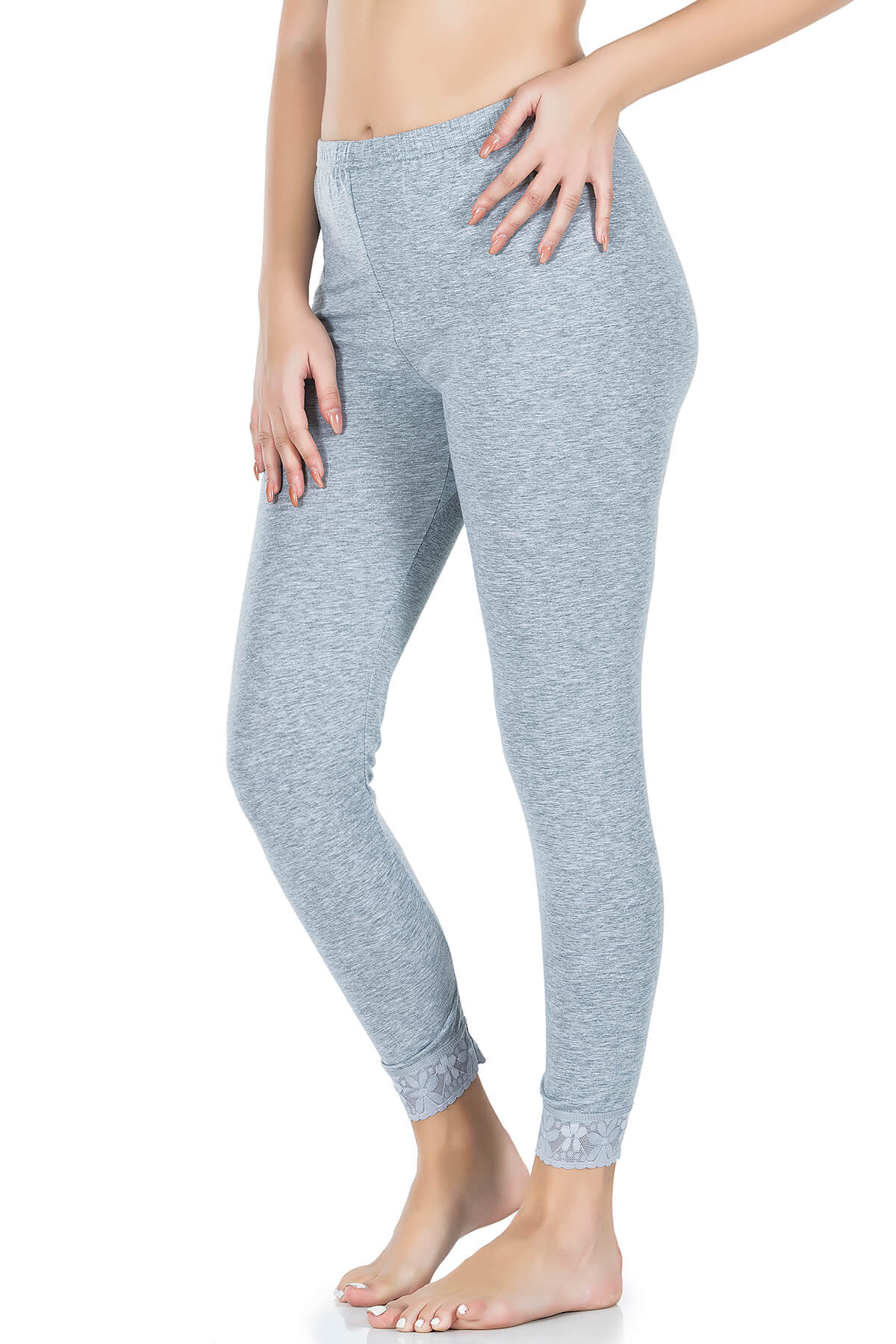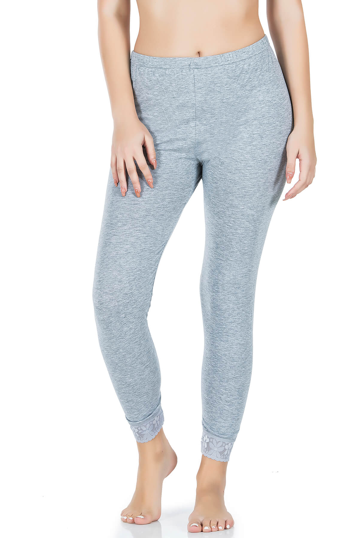 Paça kısımlarından dantelli basic likralı uzun kadın tayt modelidir.