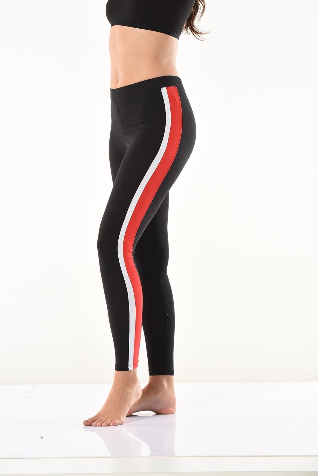 Yeni sezon şerit detaylarıyla şık bir görünüm kazandıran kadın tayt modelidir.