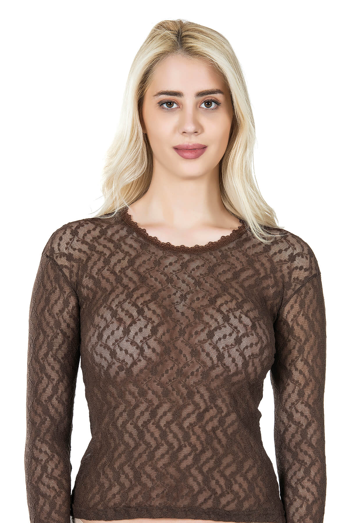Tamamı dantelli kumaştan üretilmiş yeni sezon uzun kol kadın tişört modelidir.