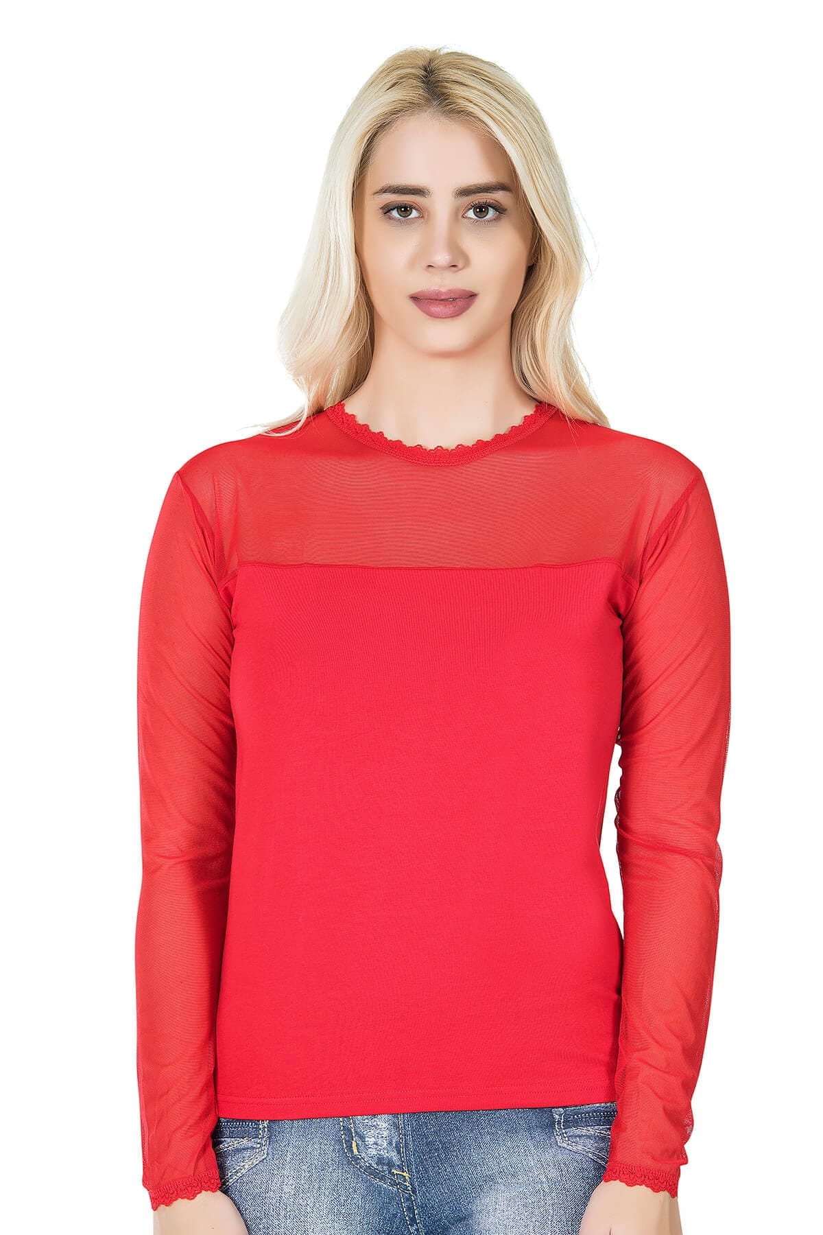 Transparan yaka yeni sezon uzun kol kadın tişört modelidir.